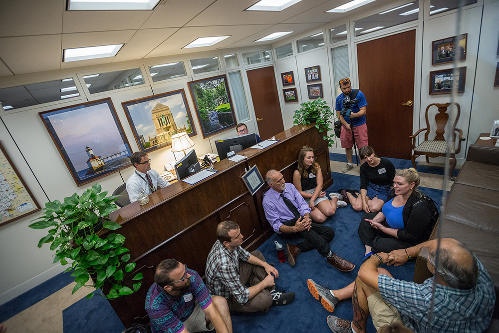 On the final day of hearings, activists organized a funeral procession and delivered flowers to heroic Senators Kamala Harris, Mazie Hirono and Cory Booker for taking bold action during the confirmation hearings. Activists also sent flowers to wavering Senator Lisa Murkowski, after 10 members from Alaska Grassroots Alliance met with her, in the hope that she shows the same bravery she displayed during the fight to save the the Affordable Care Act in this moment of urgency. Murkowski signaled that she is leaning towards voting no but needed support. This meeting illustrates the power of our coordinated actions.
